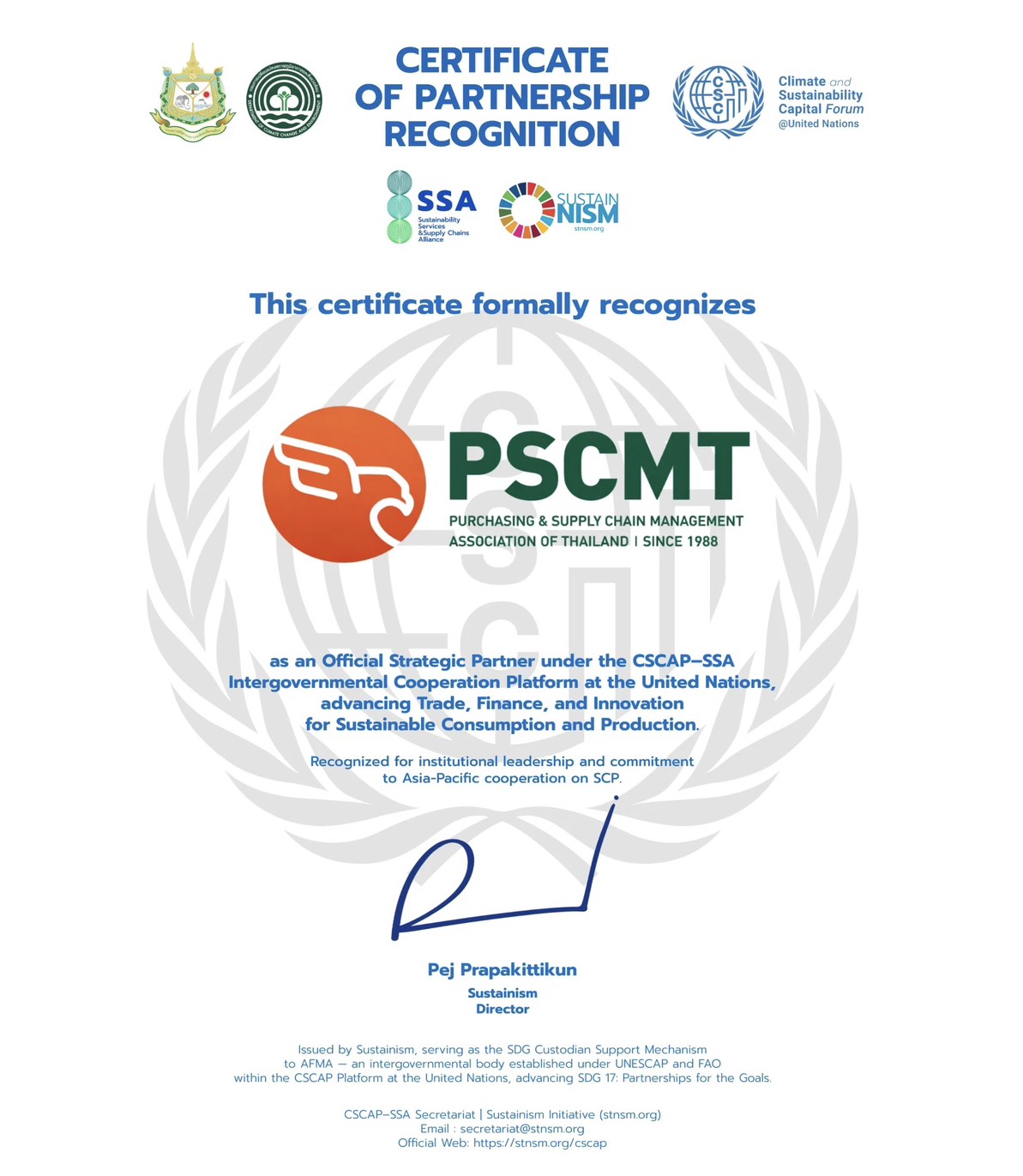 สมาคมบริหารงานจัดซื้อและซัพพลายเชนแห่งประเทศไทย (PSCMT) ร่วมมือกับ Sustainism Initiatives เพื่อขับเคลื่อนการจัดซื้อจัดหาอย่างยั่งยืน (Sustainable Procurement)