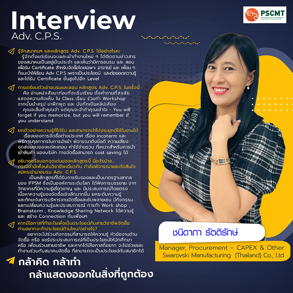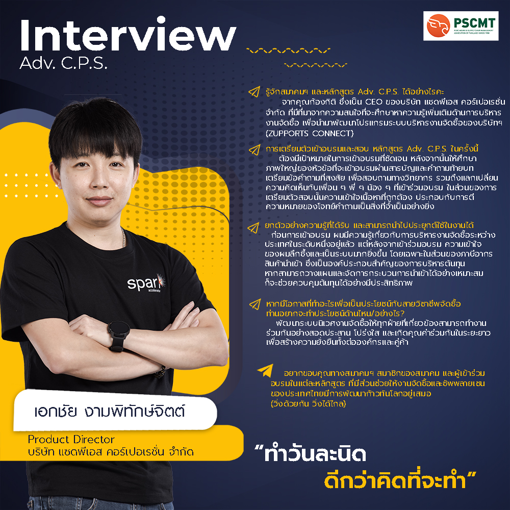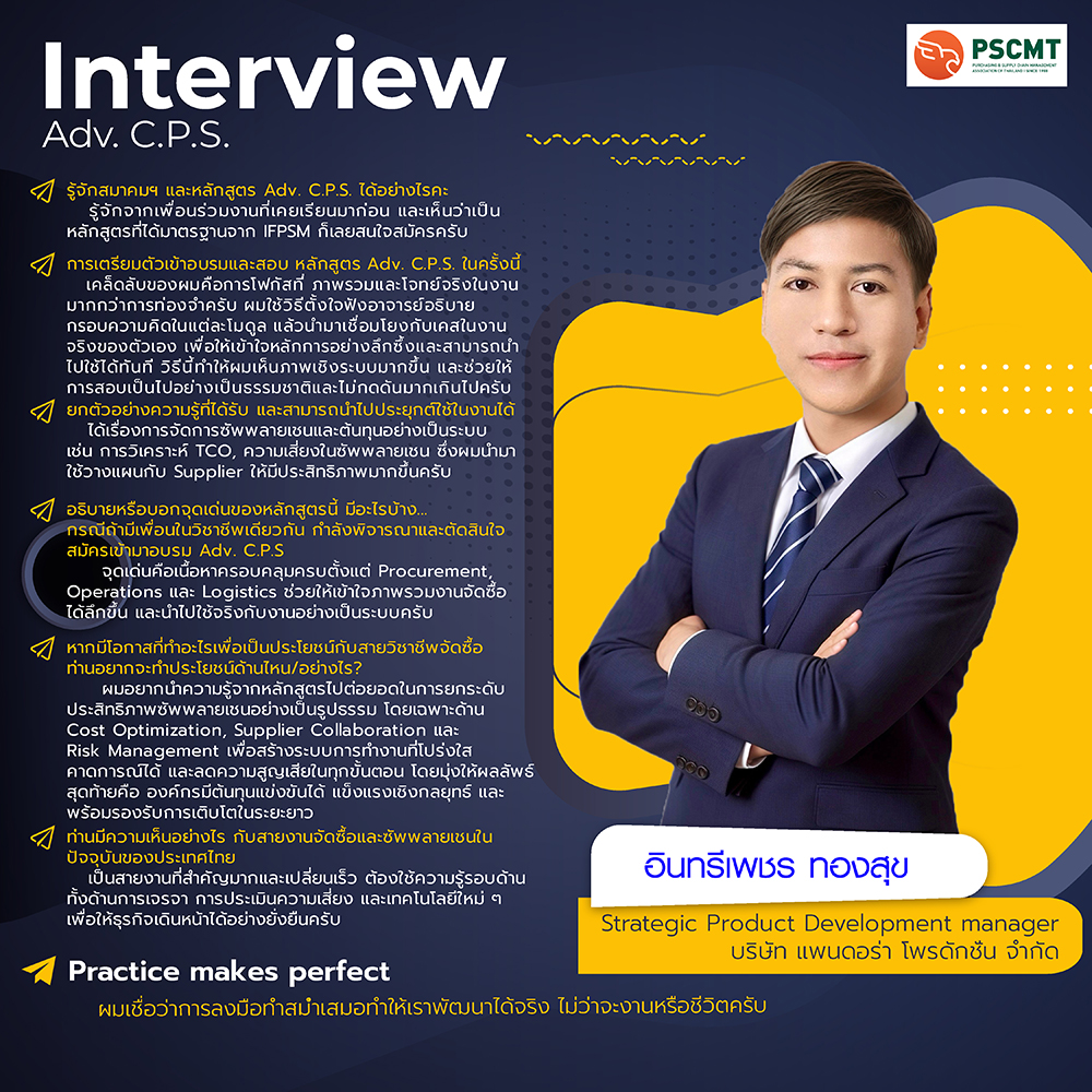 Adv. C.P.S. Interview บทสัมภาษณ์ผู้เข้าร่วมหลักสูตร Advanced Certified in Purchasing and Supply (Adv. C.P.S.) Prev
